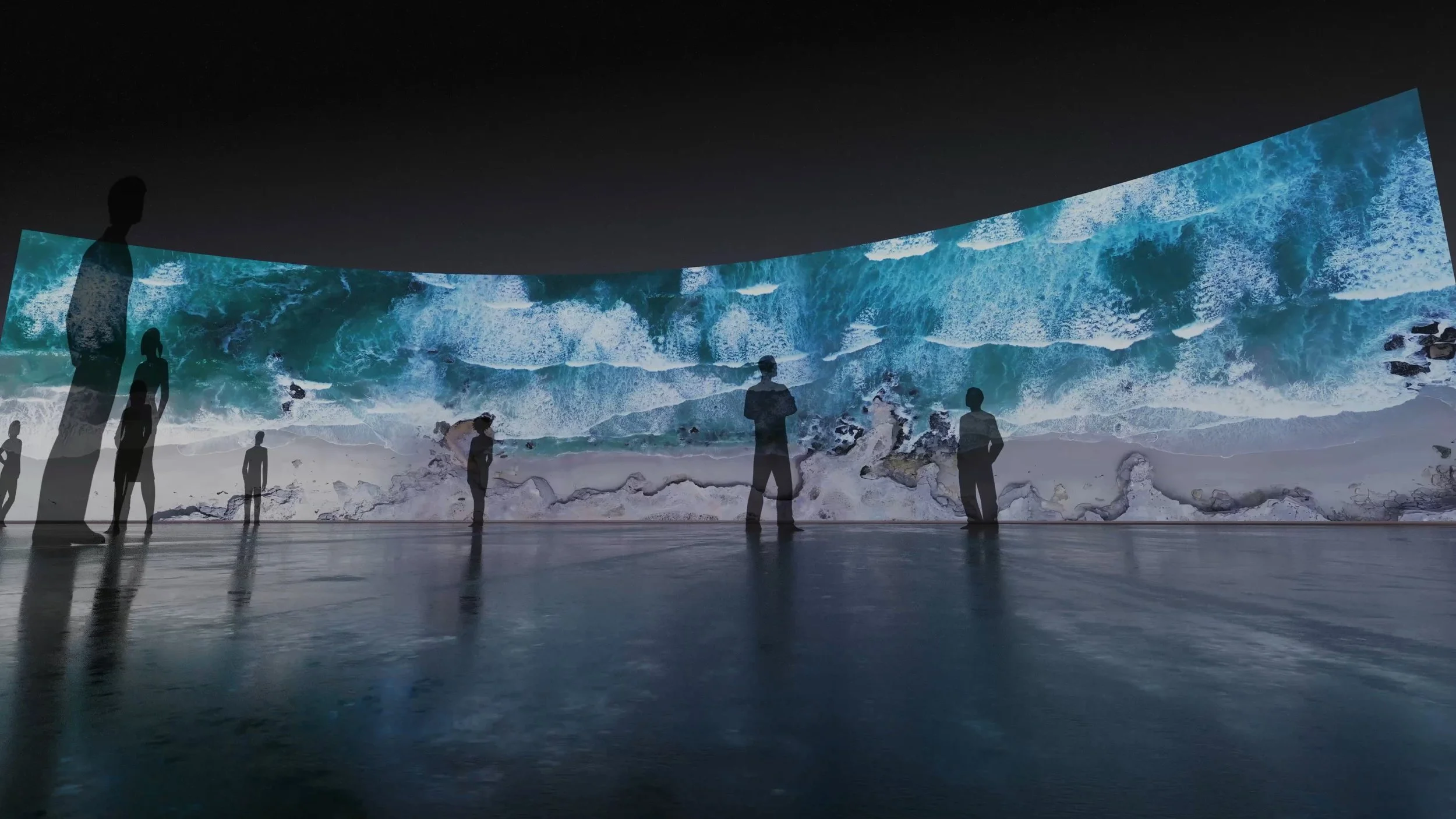 Using aerial filming techniques and custom-designed software developed over the past years, these ocean aerials allow the viewer to take in every little detail — ripples in the sand, a person walking on the beach — as well as the majestic view of large ocean waves from above. These 12K resolution visuals have been developed specifically for being displayed on ultra high res screens or large scale architectural installations.